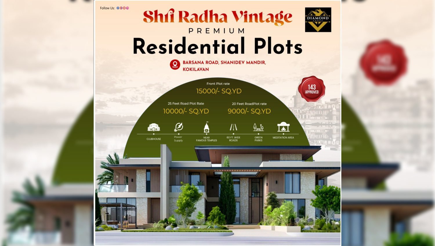 Welcome to Shri Radha Rani Nikunj, a premium residential plotting project located on the Devi Atas VIP Road in Vrindavan. This project offers you the opportunity to live a lavish lifestyle where you can build your dream home. It provides a secure and spiritual environment along with premium amenities.