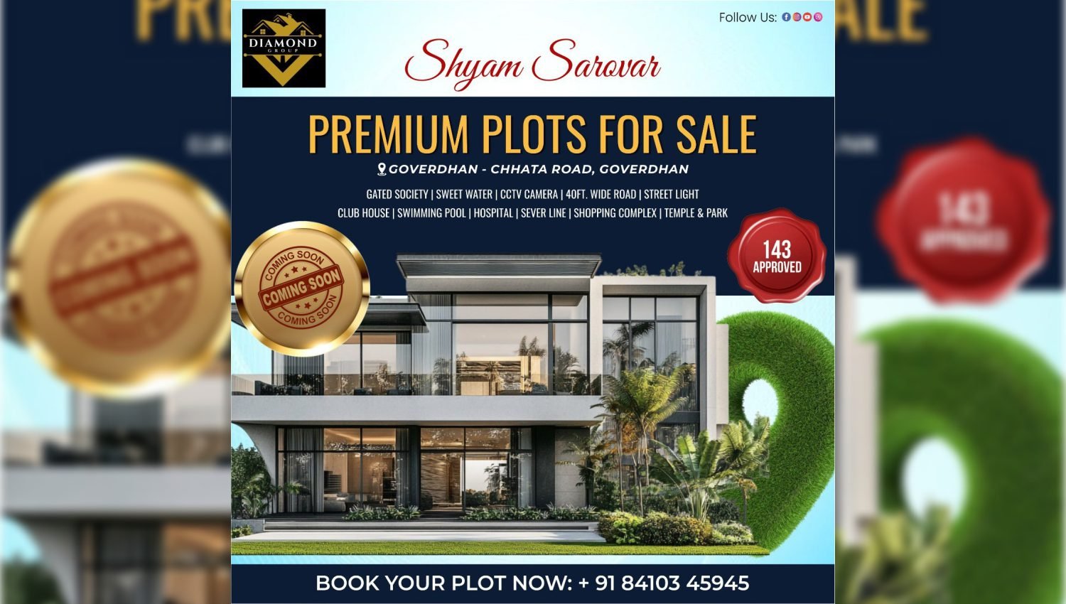 Diamond Group is bringing a new residential opportunity in the sacred land of Mathura–Vrindavan. Shyam Sarovar is designed as a modern township with prime connectivity, wide roads, and essential amenities for comfortable living. Official bookings will open soon — register your interest today to be among the first to receive updates and secure your place in this upcoming landmark community.